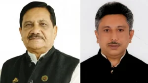 বামে ফরিদপুর-৪ আসনের নৌকার প্রার্থী ও আওয়ামী লীগের সভাপতিমণ্ডলীর সদস্য কাজী জাফর উল্লাহ এবং ডানে মাদারীপুর-১ আসনের নৌকার প্রার্থী ও জাতীয় সংসদের চিফ হুইপ নূর-ই-আলম চৌধুরী