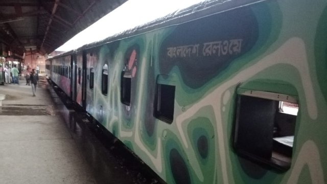 চট্টগ্রাম বিশ্ববিদ্যালয়ের শাটল ট্রেন রাঙিয়ে দিচ্ছেন জার্মান দম্পতি