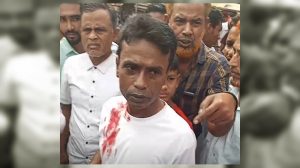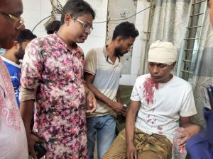 পুলিশের লাঠির আঘাতে রক্ত ঝড়ছে বাবুল মিয়ার।