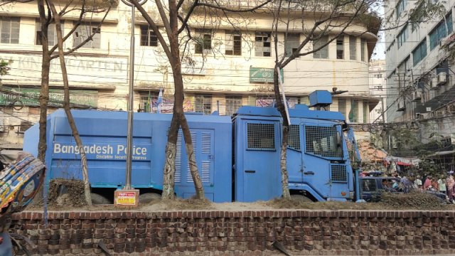 বন্দর নগরী নারায়ণগঞ্জে জল কামান নিয়ে পুলিশের টহল-তল্লাশি, রাতে ব্লকরেইড