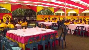 স্কুলের মাঠেই করা হয়েছে খাবারের আয়োজন