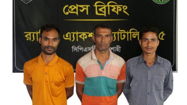 নওগাঁর পত্নীতলা থেকে সাড়ে ৪৭ কেজি গাঁজাসহ সংঘবদ্ধ মাদকচক্রের তিন সদস্যকে আটক করেছে র্যাপিড অ্যাকশন ব্যাটালিয়ন (র্যাব)। শুক্রবার (৭ জুন) দুপুরের দিকে সংবাদ বিজ্ঞপ্তিতে এ তথ্য জানায় র্যাব-৫ রাজশাহী ক্যাম্প।