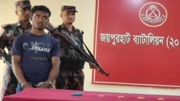 জয়পুরহাট: অবৈধ পথে সীমান্ত অতিক্রম করে ভারতে পাচারের চেষ্টাকালে স্বর্ণের চারটি বারসহ (৪০ ভরি) এক চোরাকারবারিকে আটক করেছে বর্ডার গার্ড বাংলাদেশের (বিজিবি) সদস্যরা। শুক্রবার (৮ মার্চ) দুপুরের দিকে জয়পুরহাট-২০ বিজিবির