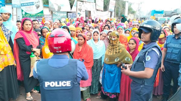 গাজীপুর: গাজীপুর সিটি করপোরেশনের কোনাবাড়ী থানাধীন জরুন এলাকায় বকেয়া বেতন, ঈদ বোনাস ও বাৎসরিক ছুটির টাকা পরিশোধের দাবিতে শ্রমিকদের বিক্ষোভ। সোমবার (১ এপ্রিল) সকাল থেকে কেয়া নিট কম্পোজিট লিমিটেড কারখানার