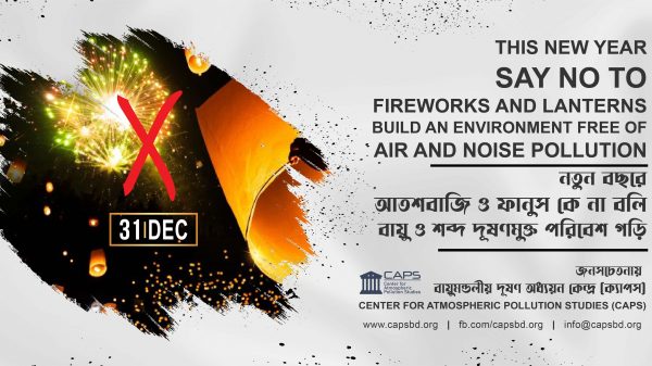 ইংরেজি নববর্ষে দেশবাসীকে আতশবাজি ও ফানুস না পোড়ানোর অনুরোধ জানিয়েছে বায়ুমণ্ডলীয় দূষণ অধ্যয়ন কেন্দ্র (ক্যাপস)। শনিবার (৩০ ডিসেম্বর) সন্ধ্যায় সংবাদ মাধ্যমে ক্যাপসের চেয়ারম্যান অধ্যাপক ড. আহমদ কামরুজ্জমান মজুমদারের পাঠানো এক