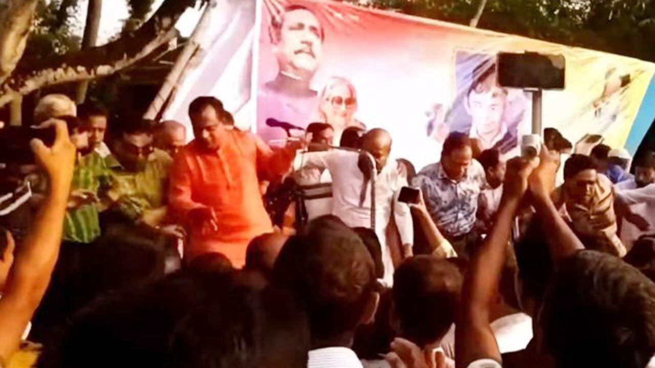 আওয়ামী লীগের উন্নয়ন সমাবেশে বক্তব্য দেওয়ার সময় মঞ্চ ভেঙে পড়েছেন রাজশাহী-৩ (পবা-মোহনপুর) আসনের সংসদ সদস্য আয়েন উদ্দিন। বুধবার (১৮ অক্টোবর) বিকেলে মোহনপুর উপজেলা সদর ইউনিয়নের একটি স্কুল মাঠে এ ঘটনা