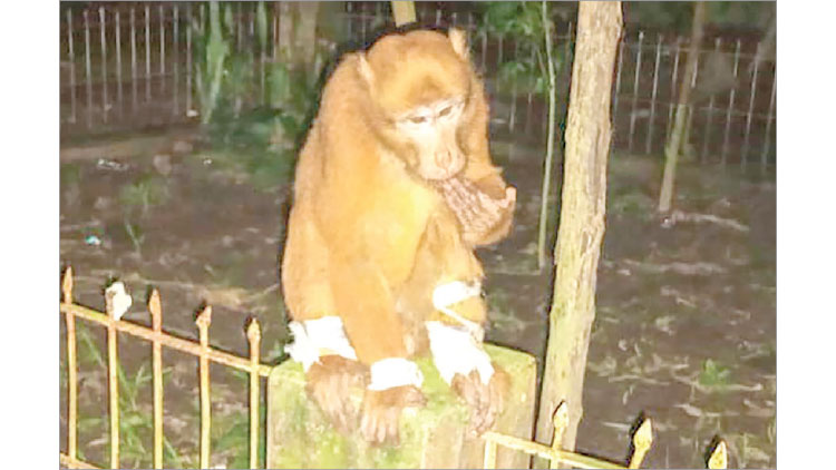 চট্টগ্রামের সীতাকুণ্ডে বৈদ্যুতিক শকে মারাত্মক আহত বানরটিকে অবশেষে ভেটেরিনারি হাসপাতালে স্থানান্তর করা হয়েছে। গতকাল সোমবার উপজেলা প্রাণিসম্পদ কর্মকর্তা ডা. তাহমিনা আরজু নিজের গাড়ি করে বানরটিকে হাসপাতালে নিয়ে যান। এর আগে