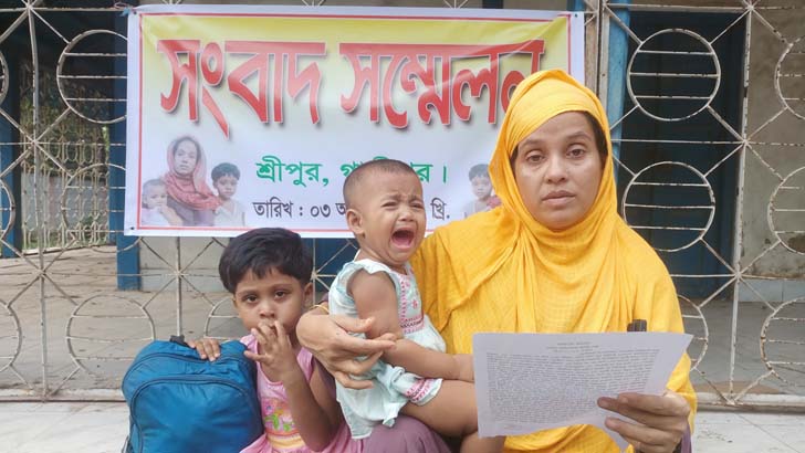 গাজীপুরের শ্রীপুরে জেল থেকে বেরিয়ে বাড়ি গিয়ে স্বামীর নতুন স্ত্রীর তাড়া খেয়ে দুই সন্তান নিয়ে বিচারের দাবিতে খোলা আকাশের নিচে ঘুরে বেড়ানো সেই নারী উপায়ন্তর না পেয়ে সংবাদ সম্মেলন করেছেন।