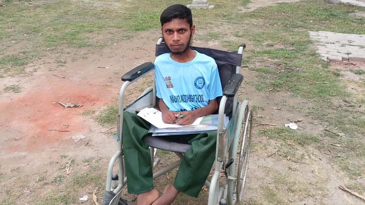 শারীরিক প্রতিবন্ধকতাকে হার মানিয়ে হুইলচেয়ারে বসে এসএসসি পরীক্ষায় অংশ নিচ্ছে নয়ন মিয়া। সে নাজিরদহ একতা উচ্চ বিদ্যালয় থেকে ২০২৩ সালের এসএসসি পরীক্ষায় মানবিক বিভাগ থেকে পরীক্ষা দিচ্ছে। নয়ন নাজিরদহ একতা