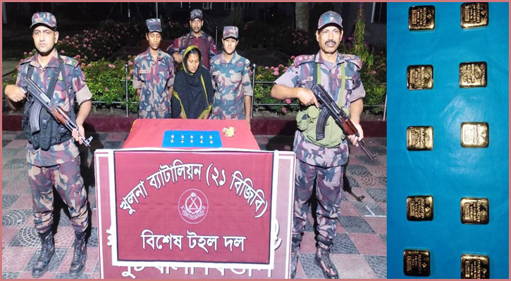যশোরের বেনাপোল সীমান্ত এলাকায় রত্না খাতুন (৩৪) নামে এক নারীর গোপনাঙ্গ থেকে ১০টি স্বর্ণের বার জব্দ করেছে বর্ডার গার্ড বাংলাদেশের (বিজিবি) সদস্যরা। তাকে আটক করা হয়েছে। রোববার (৬ নভেম্বর) রাত