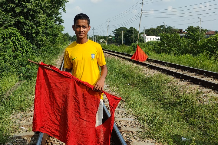 দুর্ঘটনা থেকে ট্রেনকে রক্ষা করতে ঘর থেকে চাচির একটি লাল কাপড় এনে রেললাইনে টানিয়ে দিয়েছেন ব্রাহ্মণবাড়িয়ার এক যুবক। আর এই লাল কাপড় দেখে ধেয়ে আসা ঢাকা-চট্টগ্রাম রুটের ঢাকাগামী চট্টলা এক্সপ্রেসের