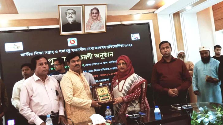 জাতীয় শিক্ষা সপ্তাহ ও বঙ্গবন্ধু সৃজনশীল মেধা অন্বেষণ প্রতিযোগিতা-২০২২ উপলক্ষে নেত্রকোনা জেলায় শ্রেষ্ঠ অধ্যক্ষ হিসেবে দুর্গাপুর মহিলা ডিগ্রি কলেজের অধ্যক্ষ ফারুক আহমেদ তালুকদার নির্বাচিত হয়েছেন। রোববার দুপুরে জেলা প্রশাসকের মিলনায়তনে