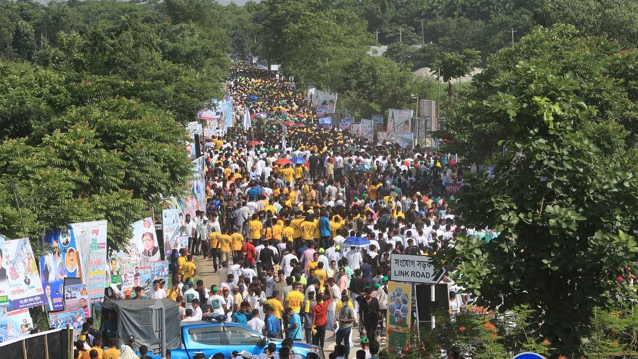 ভোর রাত থেকেই প্রধানমন্ত্রীর জনসভাস্থলে আসতে শুরু করেছে দক্ষিণ-পশ্চিমাঞ্চলের লাখ লাখ মানুষ। শনিবার (২৫ জুন) সকালে আলো ফোটার সঙ্গে সঙ্গে মিছিলে ব্যানার, প্লেকার্ডসহ সভায় যোগ দিচ্ছেন। এ সময় পদ্মা সেতুর