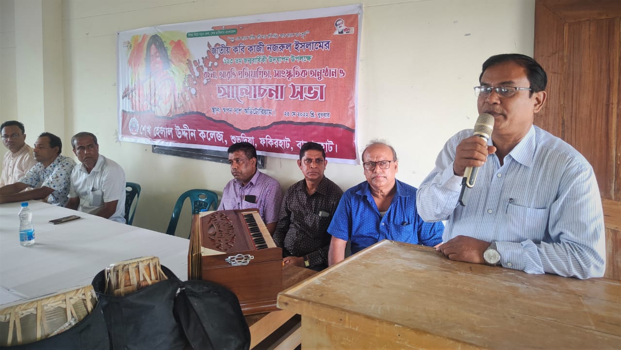 মোঃ নাজমুল হুদা, বাগেরহাট প্রতিনিধি: সকাল ১১ টায় শেখ হেলাল উদ্দীন কলেজের স্বপন দাশ অডিটোরিয়ামে জাতীয় কবি কাজী নজরুল ইসলামের ১২৩ তম জন্ম জয়ন্তী উপলক্ষে আবৃত্তি, রচনা প্রতিযোগিতা, সাংস্কৃতিক অনুষ্ঠান
