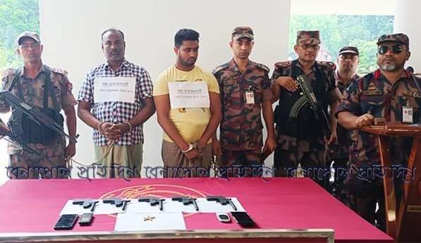বেনাপোল প্রতিনিধি: যশোরের বেনাপোল সীমান্তের সাদিপুর গ্রাম থেকে ৫টি বিদেশি পিস্তল ও ৫ রাউন্ড গুলিসহ অস্ত্র ব্যবসায়ী বাবা-ছেলেকে আটক করেছে বিজিবি সদস্যরা। সোমবার (২৩ মে) সকালে তাদের আটক করা হয়।