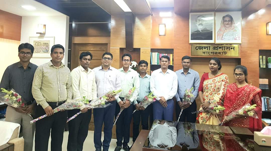 মোঃ নাজমুল হুদা, বাগেরহাট প্রতিনিধি : ৪০তম বিসিএস-এ বাগেরহাট জেলা হতে চূড়ান্তভাবে সুপারিশপ্রাপ্ত কর্মকর্তাদের সাথে শুভেচ্ছা বিনিময় করেন জনাব মোহাম্মদ আজিজুর রহমান, মান্যবর জেলা প্রশাসক ও বিজ্ঞ জেলা ম্যাজিস্ট্রেট, বাগেরহাট।