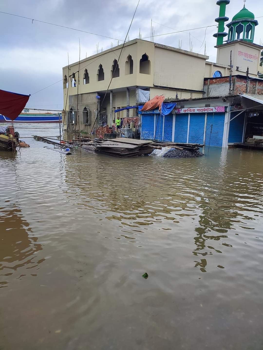 উজানের ঢলে বিপর্যস্ত সিলেট। নগরীর রাস্তায় কোথাও হাঁটু আবার কোথাও কোমর পানি। ড্রেনের নোংরা পানি ঢুকছে বসতবাড়ি ও দোকাপাটেও। মূল সড়কে পানি ওঠায় দেখা দিয়েছে পরিবহন সংকট। দুই একটি রিকশা