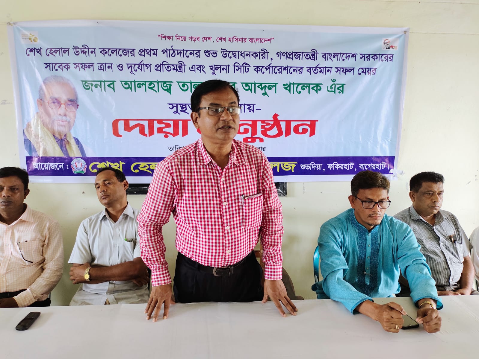 মোঃ নাজমুল হুদা, বাগেরহাট প্রতিনিধি: বাগেরহাট, ফকিরহাট উপজেলার শেখ হেলাল উদ্দীন কলেজের স্বপন দাশ অডিটোরিয়ামে আজ সোমবার সকাল ১১ টায় খুলনা সিটি কর্পোরেশনের মেয়র আলহাজ্ব তালুকদার আব্দুল খালেকের সুস্থতা কামনায়
