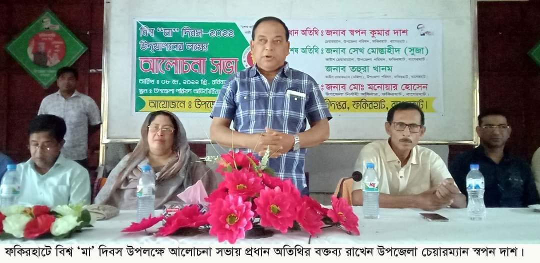 মোঃ নাজমুল হুদা, বাগেরহাট প্রতিনিধি: বাগেরহাটের ফকিরহাটে বিশ্ব ‘মা’ দিবস-২০২২ উপলক্ষে আলোচনা সভা অনুষ্ঠিত হয়েছে। ফকিরহাট উপজেলা প্রশাসন ও মহিলা বিষয়ক অধিদপ্তরের আয়োজনে ০৯ই মে ২০২২ ইং তারিখ রোজ সোমবার