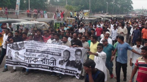 গত ১৫ বছর চলা গুম-খুন, বৈষম্যবিরোধী আন্দোলনে শিক্ষার্থী ও শিশু হত্যায় শেখ হাসিনার বিচারের দাবিতে গোপালগঞ্জে শোক র্যালি করেছে জেলা ছাত্রদলের নেতা-কর্মীরা। বুধবার (২১ আগস্ট) বেলা ১১টায় কেন্দ্রীয় কর্মসূচির অংশ
