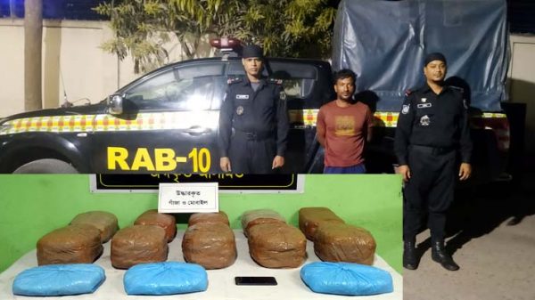ফরিদপুর জেলার ভাঙ্গায় প্রায় ১১ লাখ টাকার গাঁজাসহ মো. রেজাউল মাতুব্বর (৪১) নামে এক মাদক কারবারিকে গ্রেপ্তার করেছে র্যাপিড অ্যাকশন ব্যাটালিয়ন (র্যাব-১০)। মঙ্গলবার (০৫ মার্চ) দুপুরে ফরিদপুর র্যাব-১০ থেকে গণমাধ্যমে