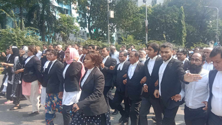 সারা দেশে সকাল-সন্ধ্যা হরতালের সমর্থনে বিক্ষোভ মিছিল করেছেন বিএনপিপন্থি আইনজীবীরা। রোববার দুপুরে মিছিলটি মাজারগেট, কদম ফোয়ারা, মৎস্যভবন হয়ে সুপ্রিমকোর্ট আইনজীবী সমিতি ভবনের সামনে গিয়ে সংক্ষিপ্ত সমাবেশে মিলিত হয়। এ সময়