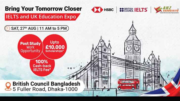 ব্রিটিশ কাউন্সিল বাংলাদেশ, এএইচজেড অ্যাসোসিয়েট এবং এইচএসবিসি একত্রে আয়োজন করতে যাচ্ছে ইউকে অ্যাডুকেশন এক্সপো। শনিবার ২৭ আগস্ট ব্রিটিশ কাউন্সিলে হবে এই এক্সপোটি। বৃহস্পতিবার এক বিজ্ঞপ্তিতে বিষয়টি জানানো হয়েছে। বিজ্ঞপ্তিতে বলা