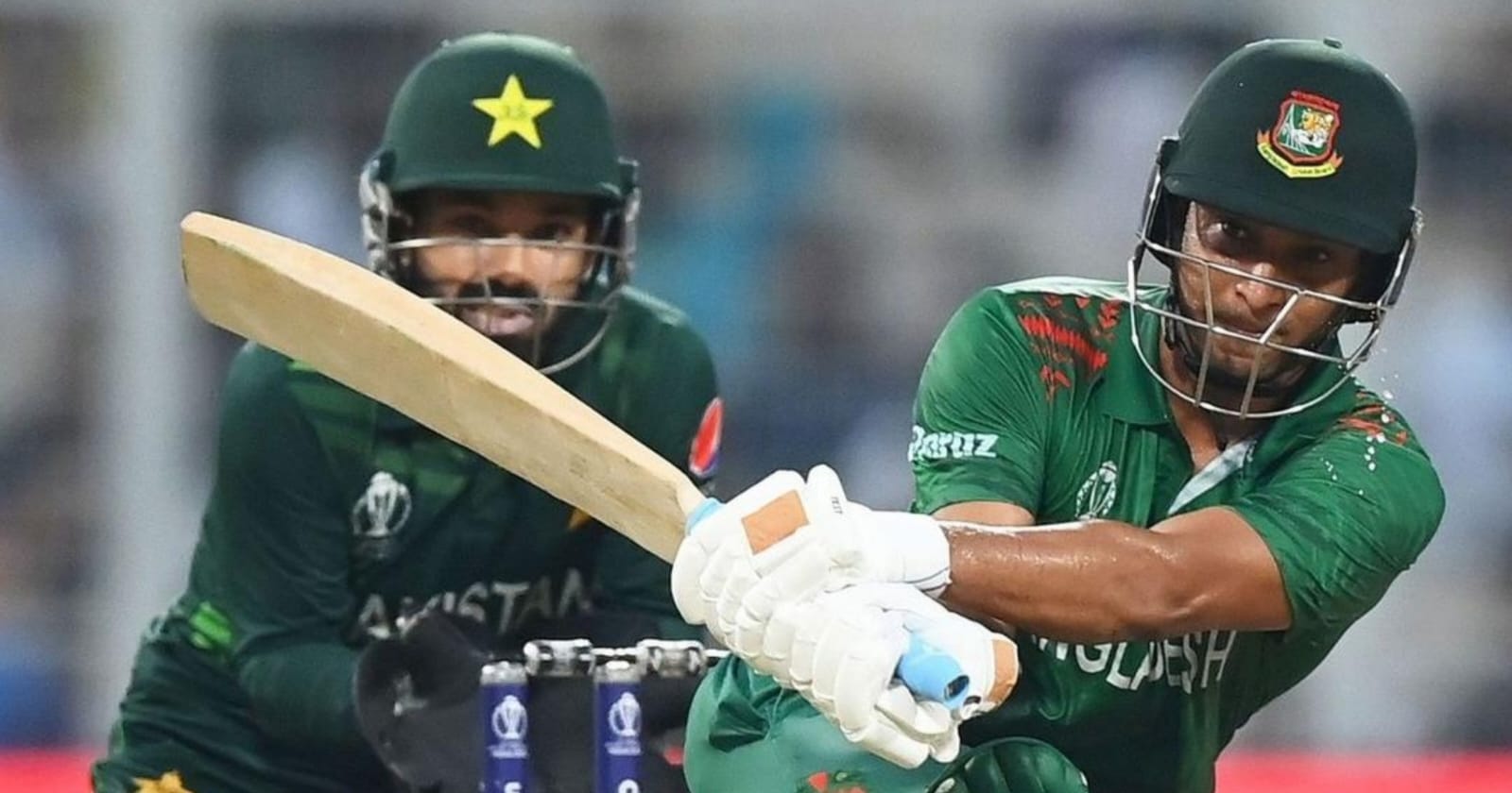 মোহাম্মদ রিজওয়ান সিঙ্গেল নিতেই গ্যালারিতে উৎসব। হুট করে মনে হতে পারে খেলা কলকাতায় নয়, হচ্ছে করাচিতে। ম্যাচটি দেখতে উল্লেখযোগ্য বাংলাদেশি সমর্থক এলেও পাকিস্তানের সমর্থকও কম ছিল না। বাংলাদেশের ব্যাটারদের কোনও