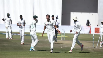 দক্ষিণ আফ্রিকার বিপক্ষে সিরিজের প্রথম টেস্টে ২২০ হেরেছে বাংলাদেশ। ২৭৪ রানের লক্ষ্যে ব্যাট করতে নেমে ৫৩ রানে অলআউট হয়ে যায় টাইগাররা। সোমবার ডারবানের কিংসমেডে পঞ্চম দিনের খেলায় ব্যাটিংয়ে নামে বাংলাদেশ।