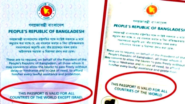 বাংলাদেশের পাসপোর্টে পুনরায় ‘এক্সসেপ্ট ইসরায়েল’ (ইসরায়েল বাদে) শব্দ দুটি পুনর্বহাল করা হয়েছে। রোববার (১৩ মার্চ) স্বরাষ্ট্র মন্ত্রণালয় সুরক্ষা সেবা বিভাগ বহিরাগমন-৪ শাখা থেকে এ সংক্রান্ত এক প্রজ্ঞাপন জারি করা হয়েছে।