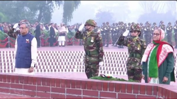 বিজয়ের ৫৩ বছরে বাংলাদেশ। মহান মুক্তিযুদ্ধের বীর শহীদদের প্রতি বিনম্র শ্রদ্ধা জানাচ্ছে গোটা জাতি। ভোরে জাতীয় স্মৃতিসৌধে শ্রদ্ধা জানান রাষ্ট্রপতি মো. সাহাবুদ্দিন ও প্রধানমন্ত্রী শেখ হাসিনা। স্মরণ করেন মুক্তিযুদ্ধের ৩০