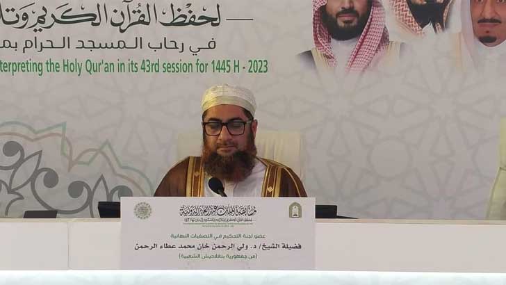 সৌদি আরবে চলমান আন্তর্জাতিক হিফজুল কুরআন প্রতিযোগিতায় বিচারক নিযুক্ত হয়েছেন বাংলাদেশি আলেম হাফেজ মাওলানা ড. ওয়ালীয়ুর রহমান খান।তিনি ইসলামিক ফাউন্ডেশন বাংলাদেশের মুহাদ্দিস হিসেবে কর্মরত রয়েছেন। আরব নিউজ জানিয়েছে, ৪৩তম বাদশাহ