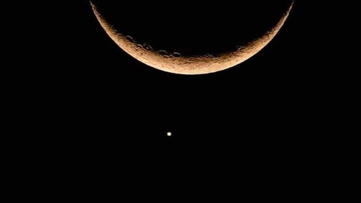 রমজানের প্রথম সন্ধ্যায় বাংলাদেশের আকাশে ভিন্ন এক চাঁদ দেখা গেছে। অর্থাৎ পশ্চিম আকাশে এক ফালি চাঁদের ঠিক নিচেই জ্বলজ্বল করে শুকতারা। সচরাচর এ ধরনের চাঁদের দেখা পাওয়া যায় না। শুক্রবার