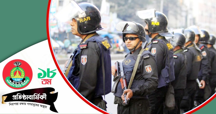 দেশের অভ্যন্তরীণ সন্ত্রাস দমন ও আইনশৃঙ্খলা-নিরাপত্তা নিশ্চিতের লক্ষ্যে গঠিত চৌকস এলিট ফোর্স র্যাপিড অ্যাকশন ব্যাটালিয়ানের (র্যাব) ১৮তম প্রতিষ্ঠাবার্ষিকী ছিল শনিবার (২৬ মার্চ)। তবে প্রতিষ্ঠাবার্ষিকী আনুষ্ঠানিকভাবে উদযাপন করা হচ্ছে আজ। এ