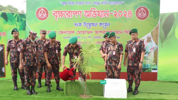বর্ডার গার্ড বাংলাদেশের (বিজিবি) ‘বৃক্ষরোপণ অভিযান-২০২৪’র উদ্বোধন করেছেন মহাপরিচালক মেজর জেনারেল মোহাম্মদ আশরাফুজ্জামান সিদ্দিকী। মঙ্গলবার (২ জুন) দুপুরে বিজিবি সদর দপ্তর, পিলখানার বকুলতলা প্রাঙ্গণে নিজ হাতে একটি আমলকী গাছের চারা