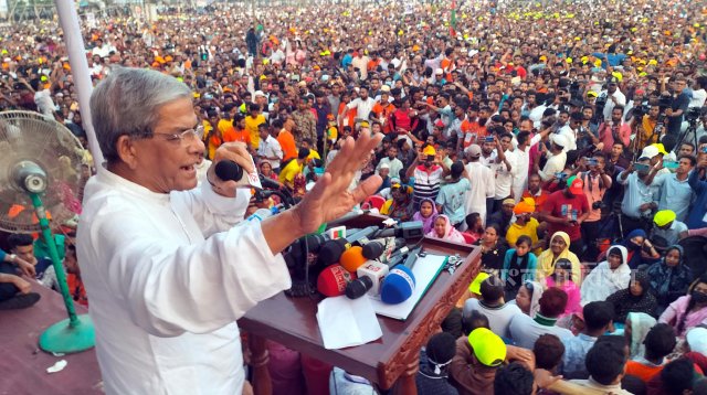 সংসদ ভেঙে দিয়ে তত্ত্বাবধায়ক সরকারের হাতে ক্ষমতা হস্তান্তরের আহ্বান জানিয়ে বিএনপির মহাসচিব মির্জা ফখরুল ইসলাম আলমগীর বলেছেন, ‘আমাদের অবস্থান খুবই পরিষ্কার। প্রধানমন্ত্রী শেখ হাসিনাকে সংসদ থেকে পদত্যাগ করতে হবে, সংসদ