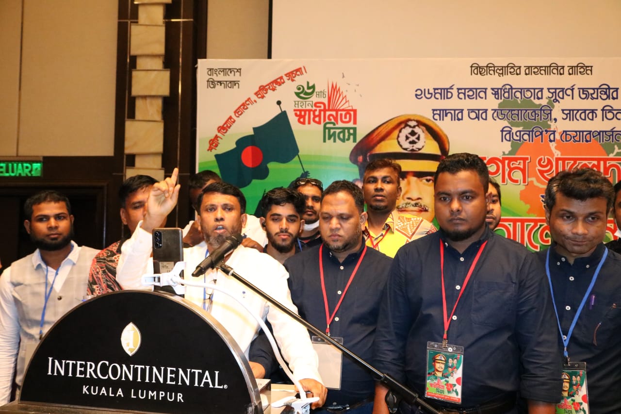 আশিক ইসলাম, মালয়েশিয়া প্রতিনিধি: মহান স্বাধীনতার সুবর্ণ জয়ন্তীর ৫১ তম বার্ষিকী উদযাপন ও সাবেক প্রধানমন্ত্রী,বিএনপির চেয়ারপার্সন দেশনেত্রী বেগম খালেদা জিয়া স্থায়ী মুক্তির দাবিতে আলোচনা সভা করেছে মালয়েশিয়া যুবদল। মালয়েশিয়া যুবদলের