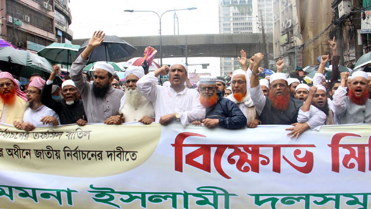 দ্বাদশ জাতীয় সংসদ নির্বাচনের ঘোষিত তফশিল বাতিলের দাবিতে রাজধানীতে বিক্ষোভ মিছিল করেছে সমমনা ইসলামী দলগুলো। শুক্রবার দুপুরে বায়তুল মোকাররম মসজিদের উত্তর গেটে পৃথকভাবে বিক্ষোভ মিছিল করে দলগুলো। জুমার নামাজ শেষে