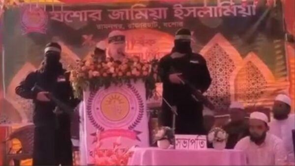 যশোর জামিয়া ইসলামিয়া মাদ্রাসার একটি ভিডিও নিয়ে ব্যাপক তোলপাড় সৃষ্টি হয়েছে। ভিডিওতে দেখা গেছে, সুসজ্জিত মঞ্চে হাঁটু গেড়ে বসা গুটিকয়েক মানুষ। সবার পরনে সাদা পায়জামা, মাথায় টুপি। মঞ্চটির একটি কোণে